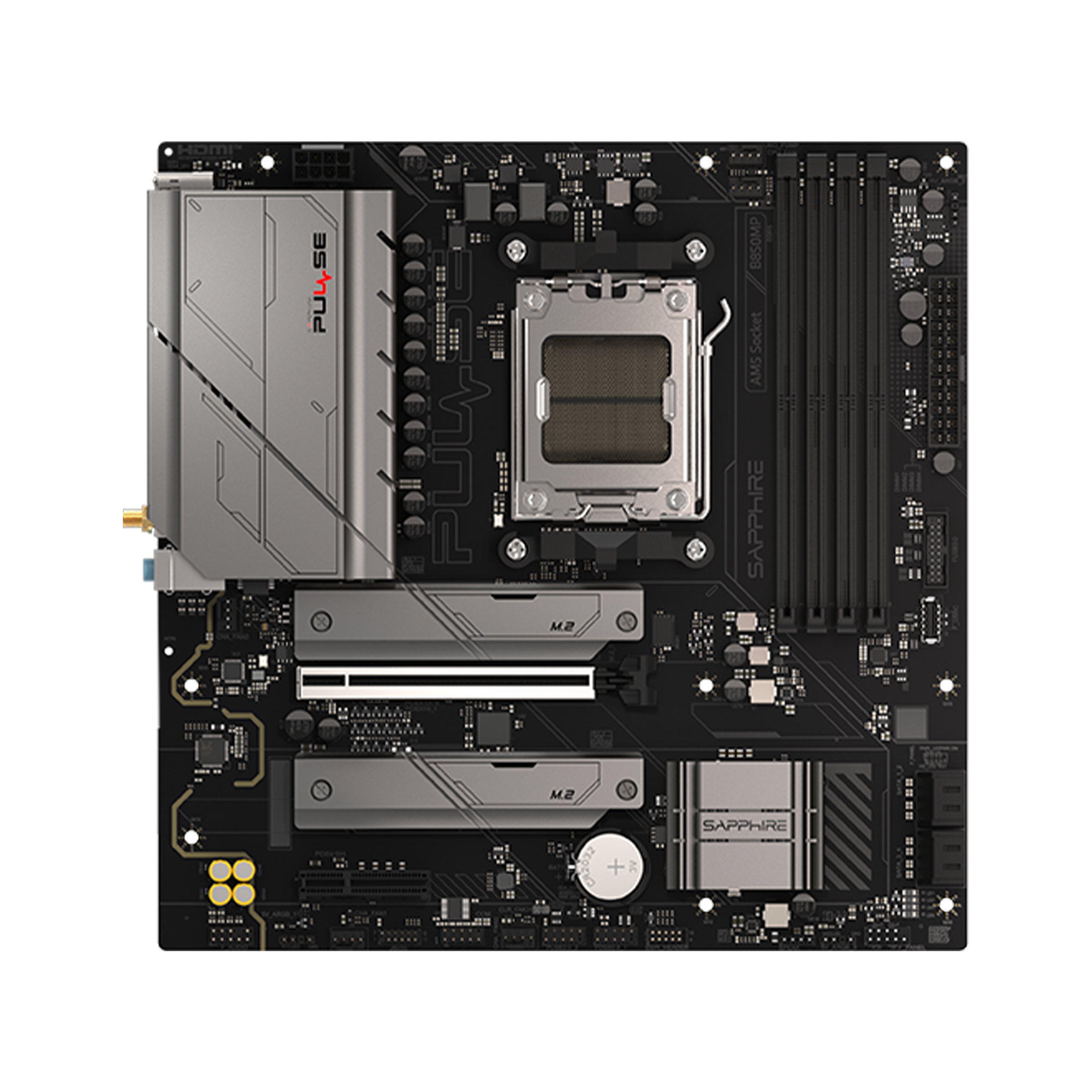 The Sapphire PULSE B850M WIFI motherboard is engineered to support the latest AMD Ryzen processors with robust 7+2+1 phase power delivery and efficient cooling. It offers high-speed connectivity and performance with DDR5 memory support up to 7600 MHz and lightning-fast PCIe 5.0 M.2 storage capabilities.